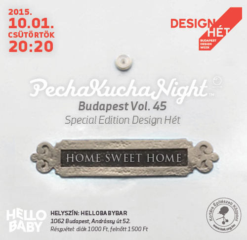 Az idén 12. alkalommal megrendezett Design Hét az ‘Otthon’ hívószó köré gyűjti az érdekes design, építészeti és kreatív projekteket, így október 1-jén a Pecha Kucha Night Budapest 45. kiadása alkalmával a legújabb belsőépítészeti munkákat hozzuk el nektek!